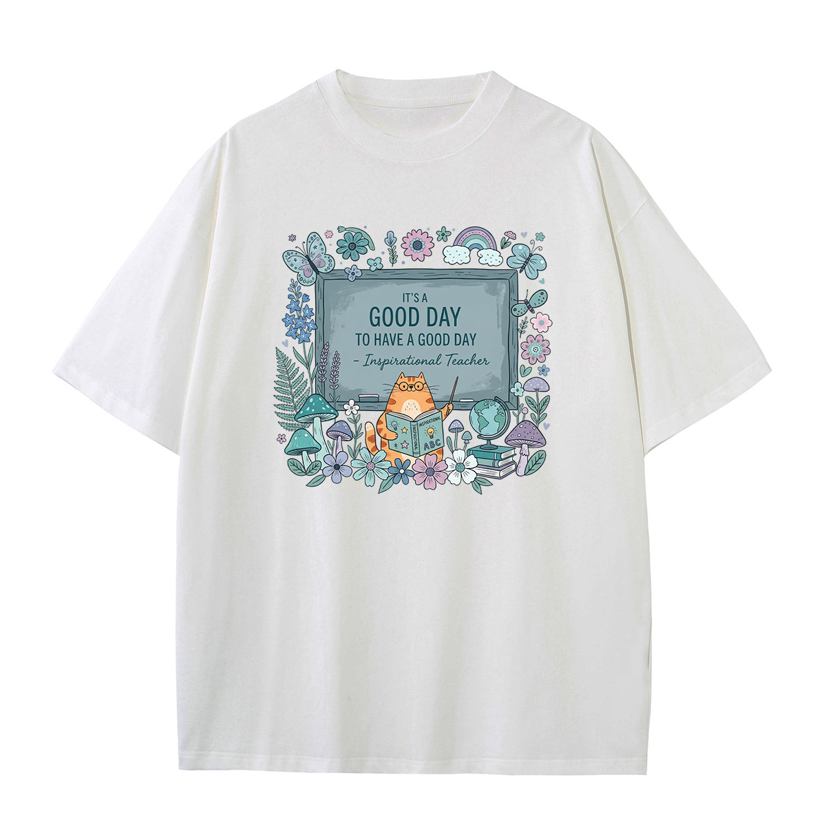 Positive, comfortable, and full of personality—this t-shirt is a perfect choice for inspiring your day while expressing your love for cats and teaching.